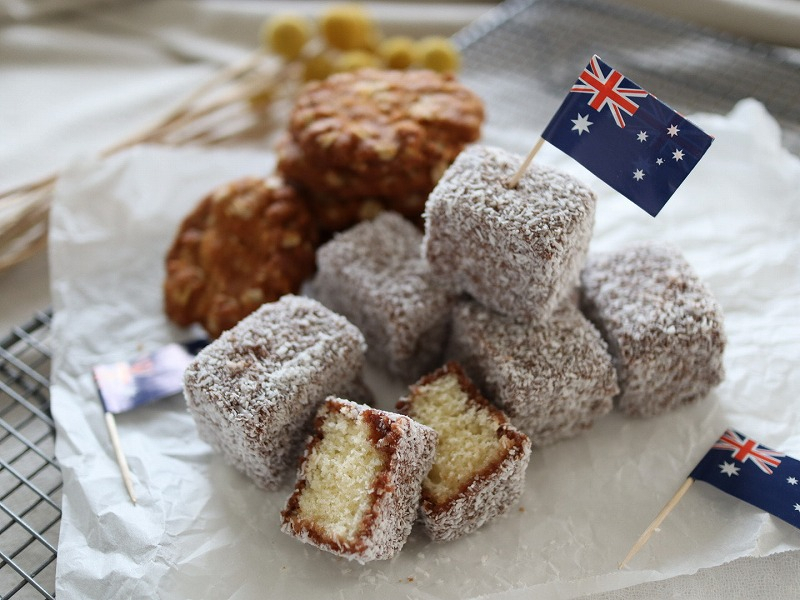 シトリンカフェは3月20日(金・祝日)オーストラリア特集でラミントンとANZACビスケットのお菓子を出しますよー☆ラミントンは万博でも大人気で今話題のお菓子です。スポンジケーキをチョコとココナッツでコーティングされたフワフワで美味しいお菓子です。コーヒーや紅茶にピッタリ。またANZACビスケットは毎年オーストラリアのアンザックデー4月25日(祝日)の時に食べられるお菓子です。オーツ麦・ココナッツたっぷりのザクザクビスケットです。